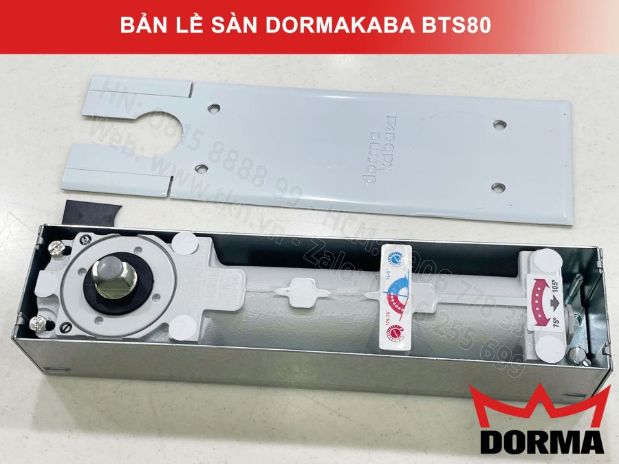 Bản lề sàn cửa Dorma BTS80 - một sản phẩm cao cấp của hãng sản xuất phụ kiện cửa Dorma, sản xuất trên dây chuền công nghệ tiên tiến của Đức, nhập khẩu và phân phối chính thức tại Việt Nam bởi Công ty CP Đầu tư và Thương mại Tân Kỷ Nguyên.