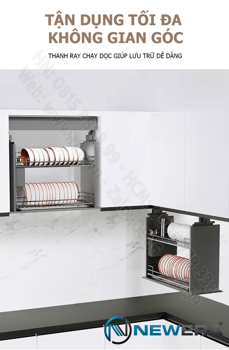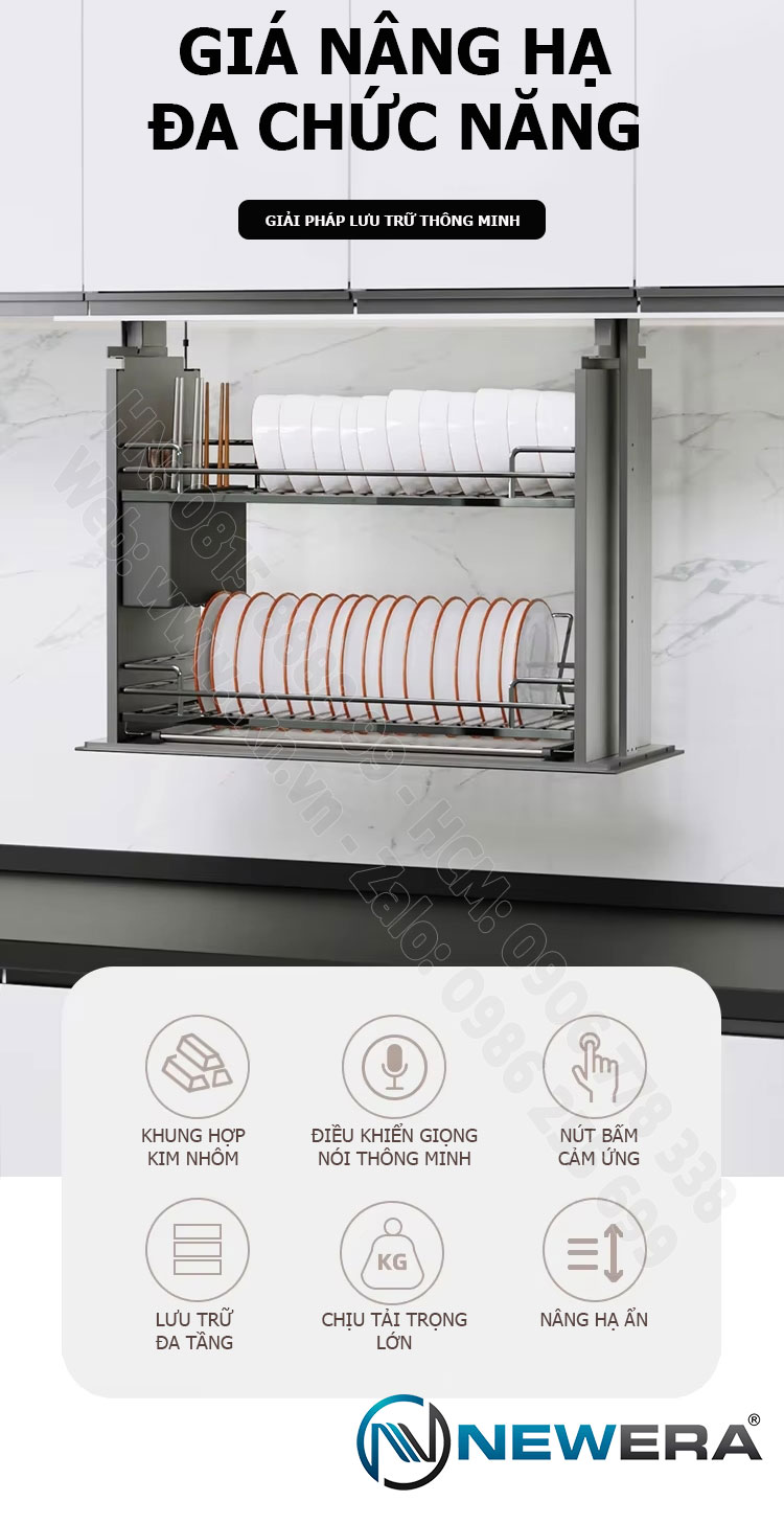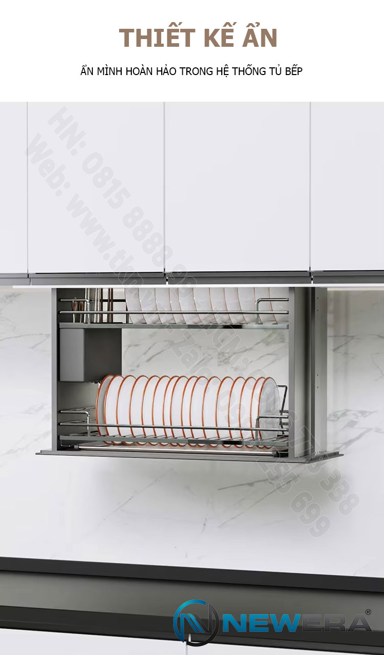 Giá bát nâng hạ điện thông minh NewEra NE113.600L là giải pháp lưu trữ đỉnh cao, định nghĩa lại sự tiện nghi cho căn bếp hiện đại. Kết hợp hoàn hảo giữa công nghệ tự động, thiết kế âm tủ tinh tế và vật liệu Inox 304 siêu bền, sản phẩm cho phép bạn nâng hạ toàn bộ bát đĩa chỉ bằng một câu lệnh hoặc một cú chạm nhẹ.