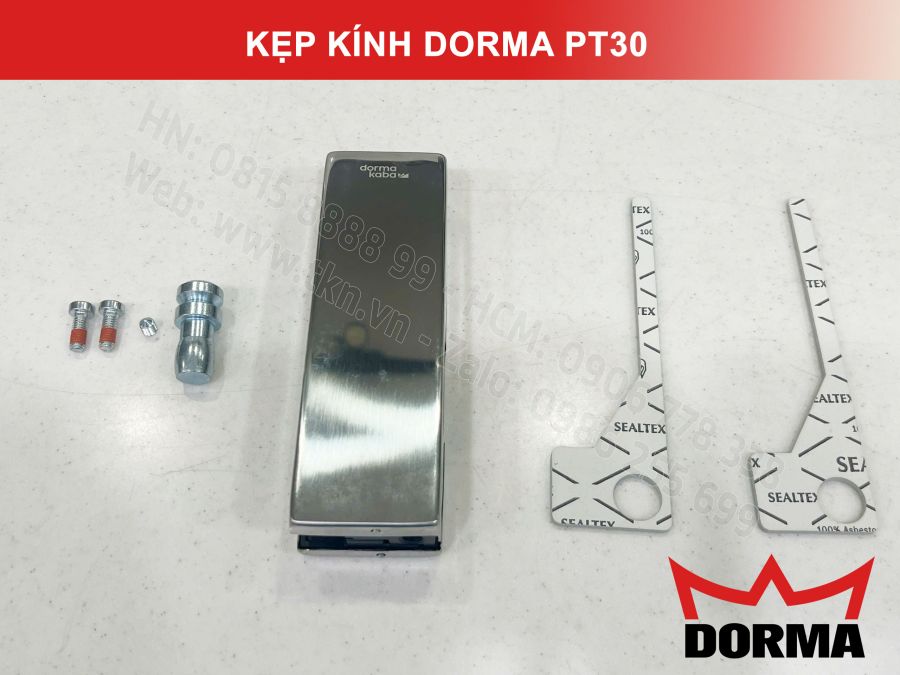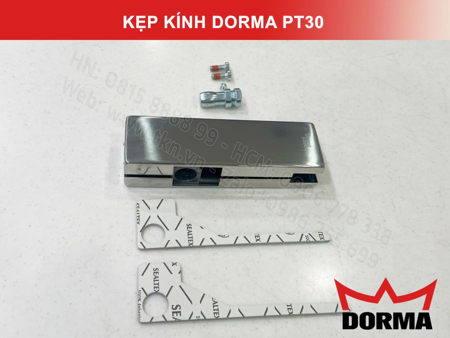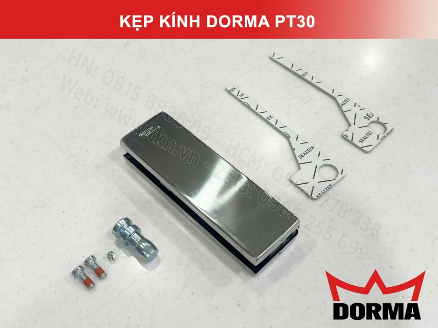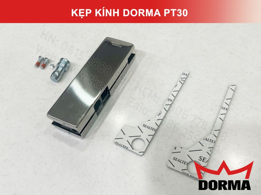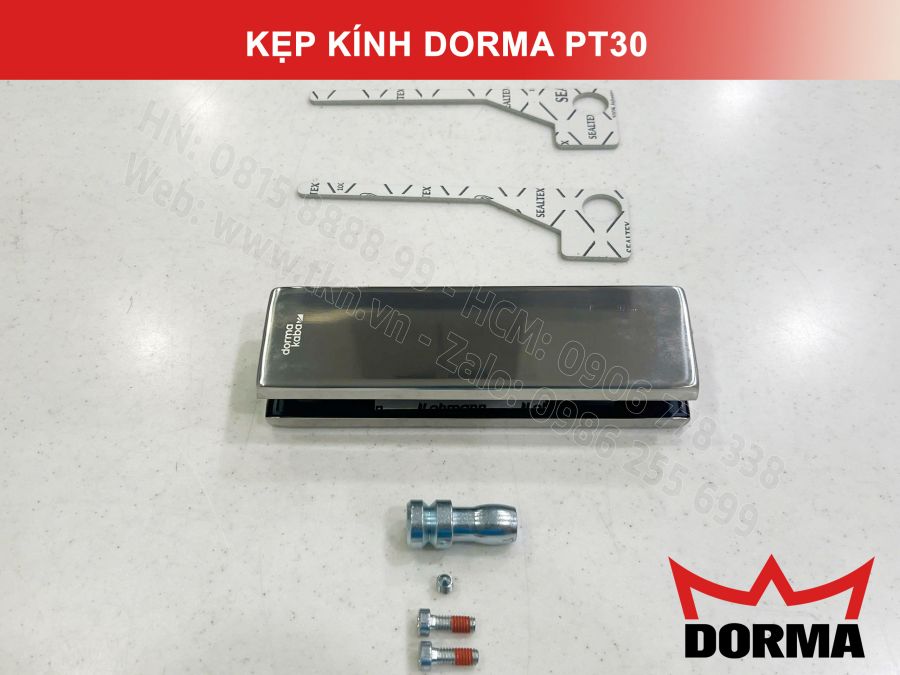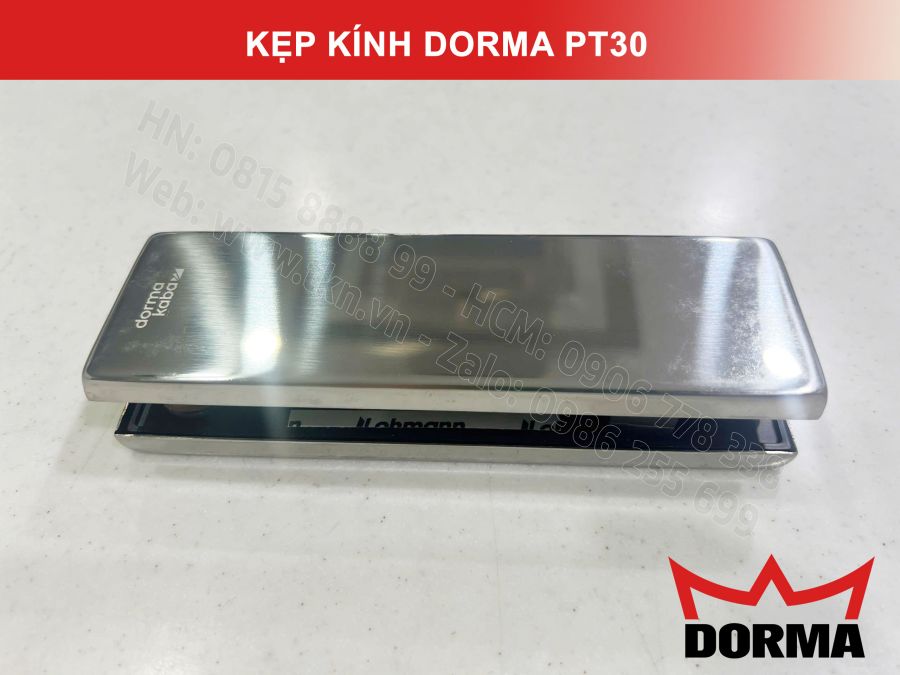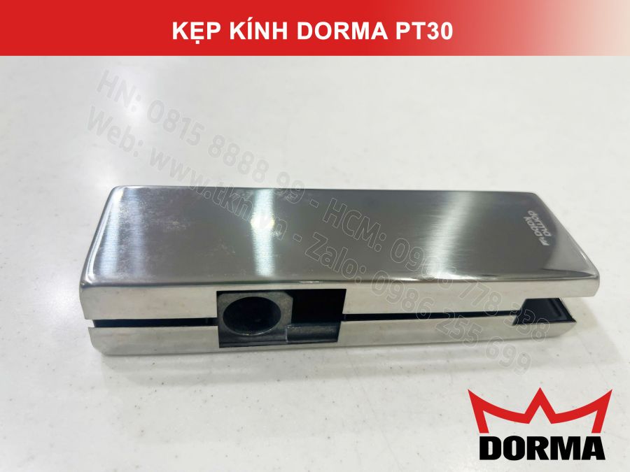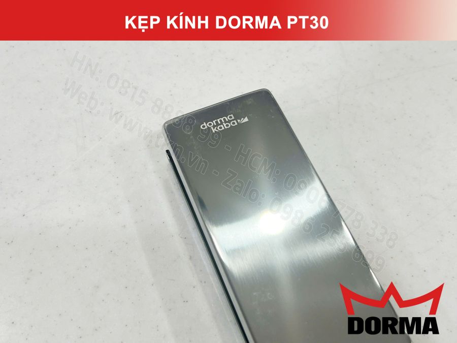 Thiết kế chính xác: Với kích thước tiêu chuẩn chiều dài 164mm, kẹp PT30 đảm bảo sự tương thích hoàn hảo với các loại kính có độ dày phổ biến. Thiết kế này giúp liên kết kẹp kính Dorma với tấm kính một cách chắc chắn, an toàn.